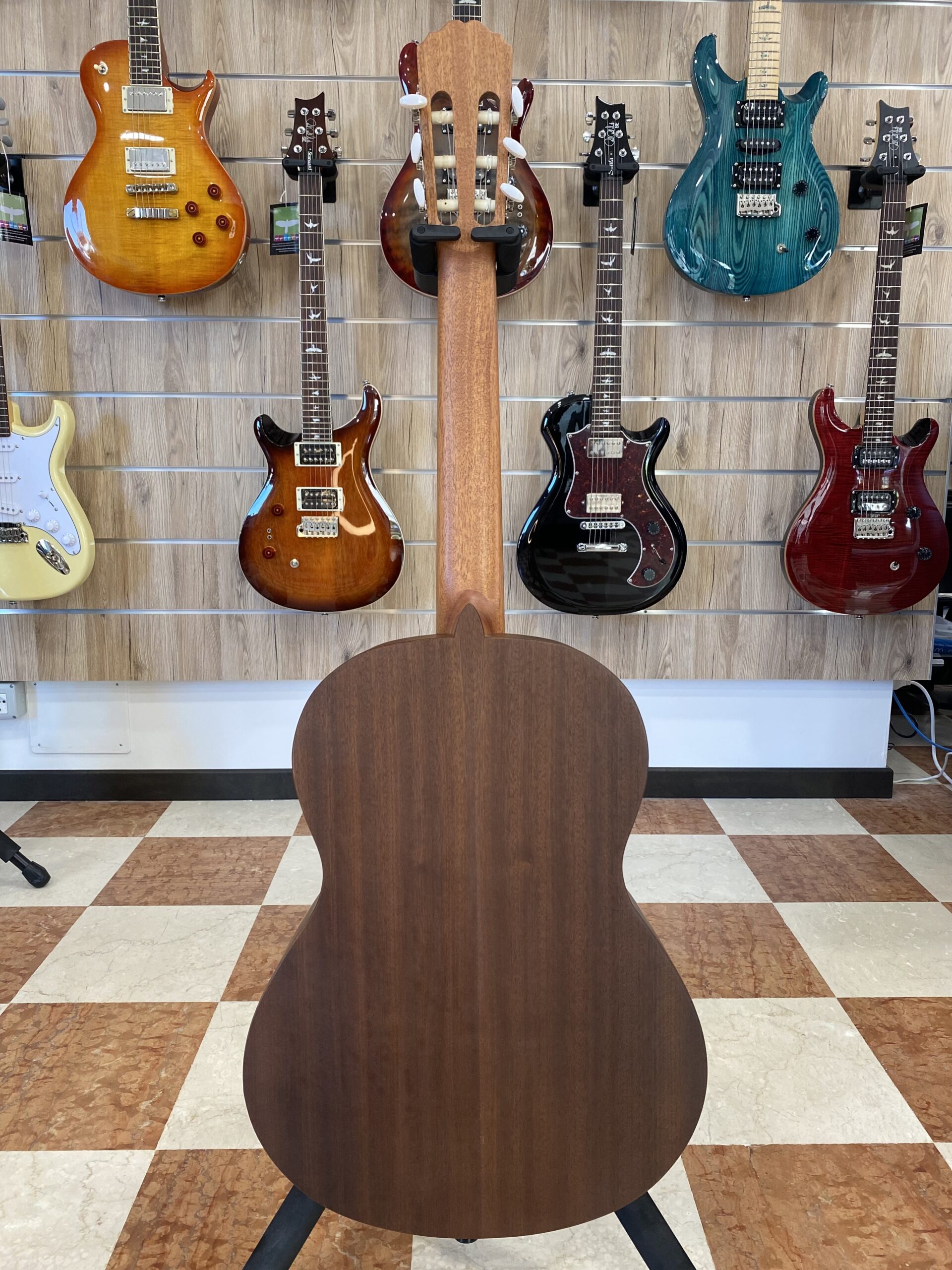 Dalla tavola armonica in abete massello al fondo e alle fasce in sapele risonante, tutto è accuratamente realizzato a mano con legni selezionati. Scoprirete la sua eleganza in ogni nota, esaltata dalle meccaniche nichelate, dalla tastiera in palissandro e dal mirino in acero che trasformano questa chitarra in un’opera d’arte.