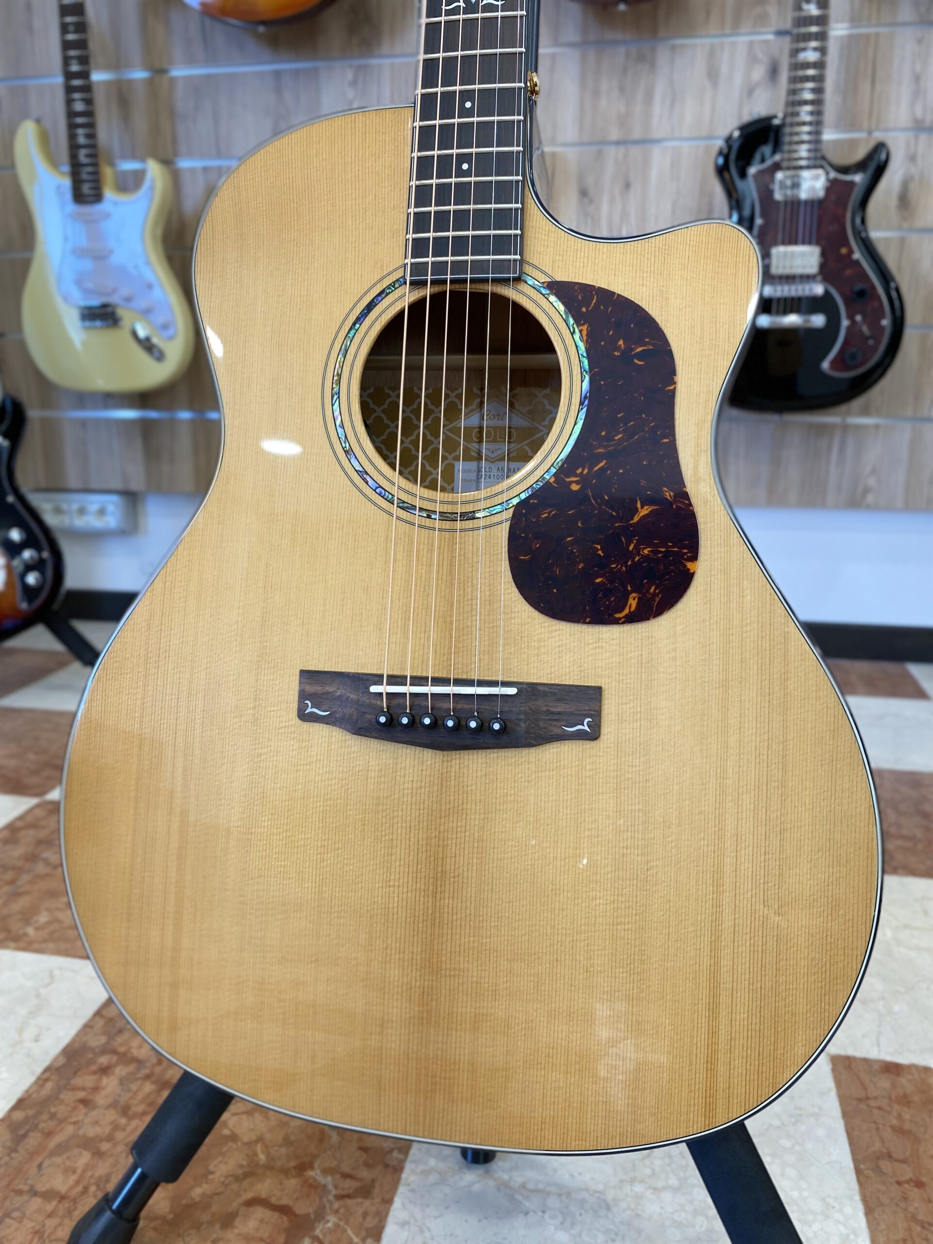 Il tratto distintivo della serie Gold di Cort è il trattamento Aged to Vintage (ATV), che sottopone il top in abete Sitka a una stagionatura avanzata per offrire fin da subito il suono pieno e aperto di una chitarra vintage. L’ATV funziona come un processo di torrefazione, conferendo alla Gold A6 un timbro ampio e arioso, brillante ma naturale, con una gamma media forte e calda, esaltata dal fondo e fasce in mogano massello.