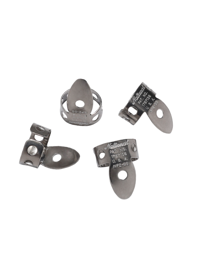 I plettri National in acciaio inossidabile per le dita producono un timbro pronunciato e brillante, dal volume e dalla definizione imbattibili. Ogni plettro è modellabile per poter essere adattato alle dita dell’esecutore.