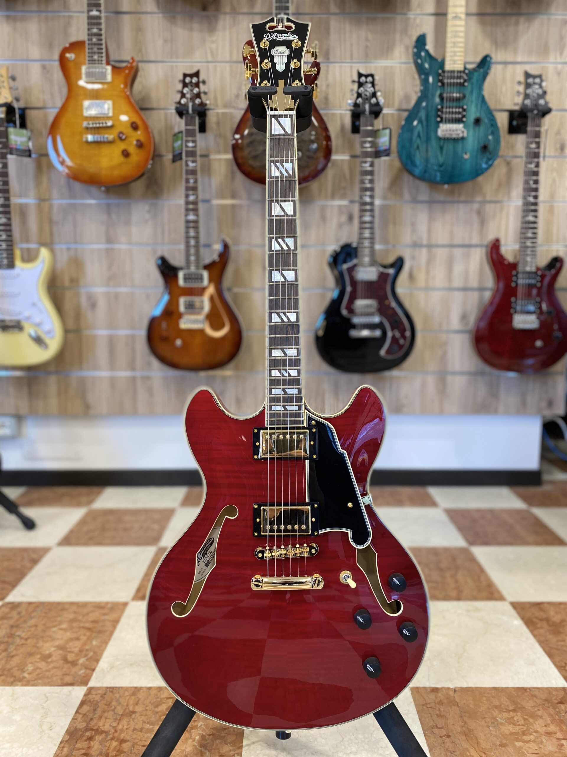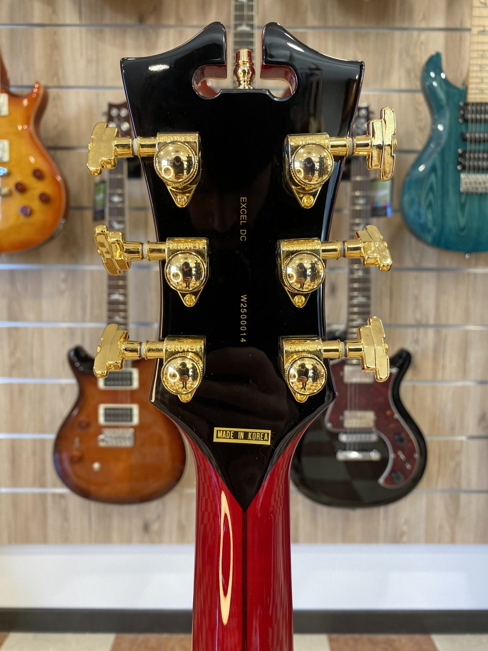 La Excel DC è una chitarra semiacustica double cutaway che si distingue per i suoi timbri classici e la versatilità moderna. Grazie alle profonde e comode spalle mancanti e al profilo del manico sottile a “C” che bilancia la cassa larga 40,6 cm, la suonabilità della Excel DC è straordinaria. Un humbucker Seymour Duncan 59 al manico, abbinato a un Seymour Duncan SH-4 al ponte, offre un’ampia gamma di sonorità: dal calore vintage alla brillantezza cristallina, mentre il blocco centrale contrasta il feedback ad alto volume. Ora con tastiera in palissandro, tasti Jescar 47104 e meccaniche Grover ispirate al vintage.