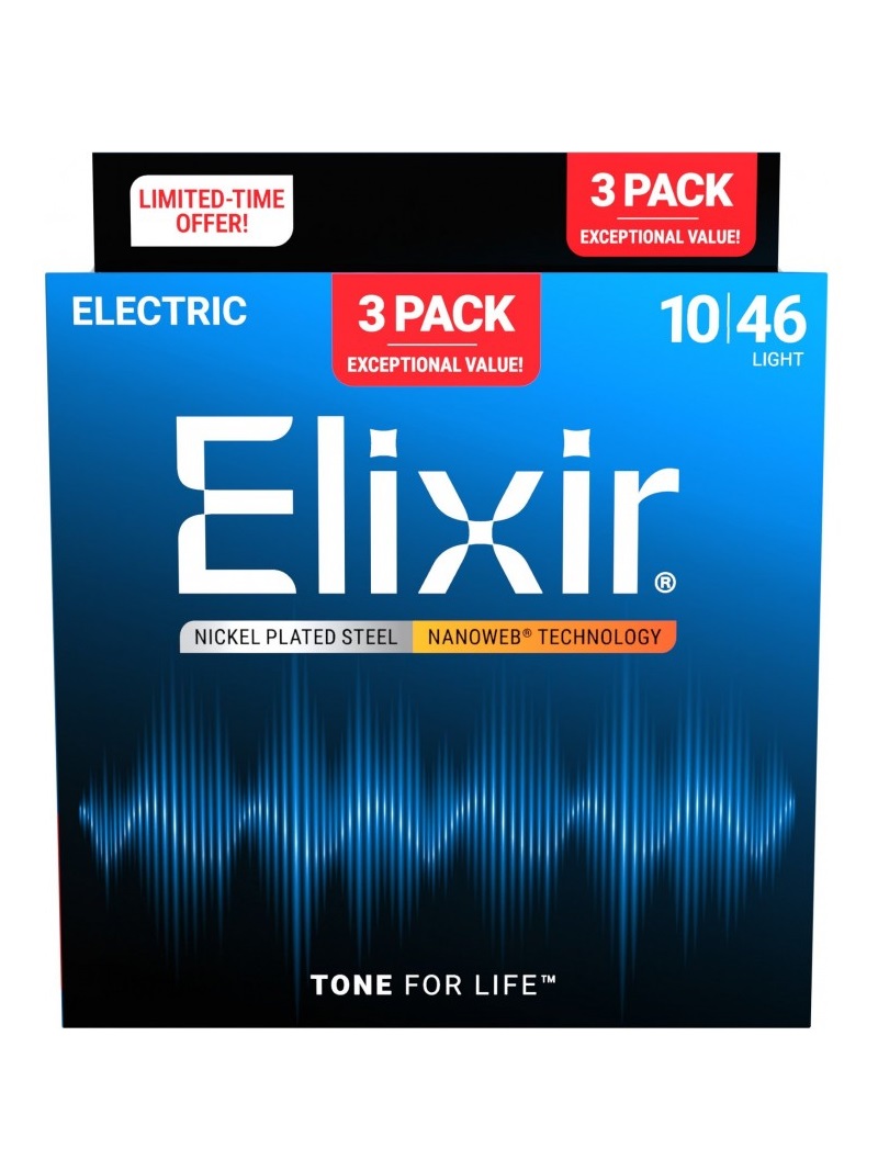 Elixir 16567 Electric Nickel Plated Steel NANOWEB 10-46 3-Pack