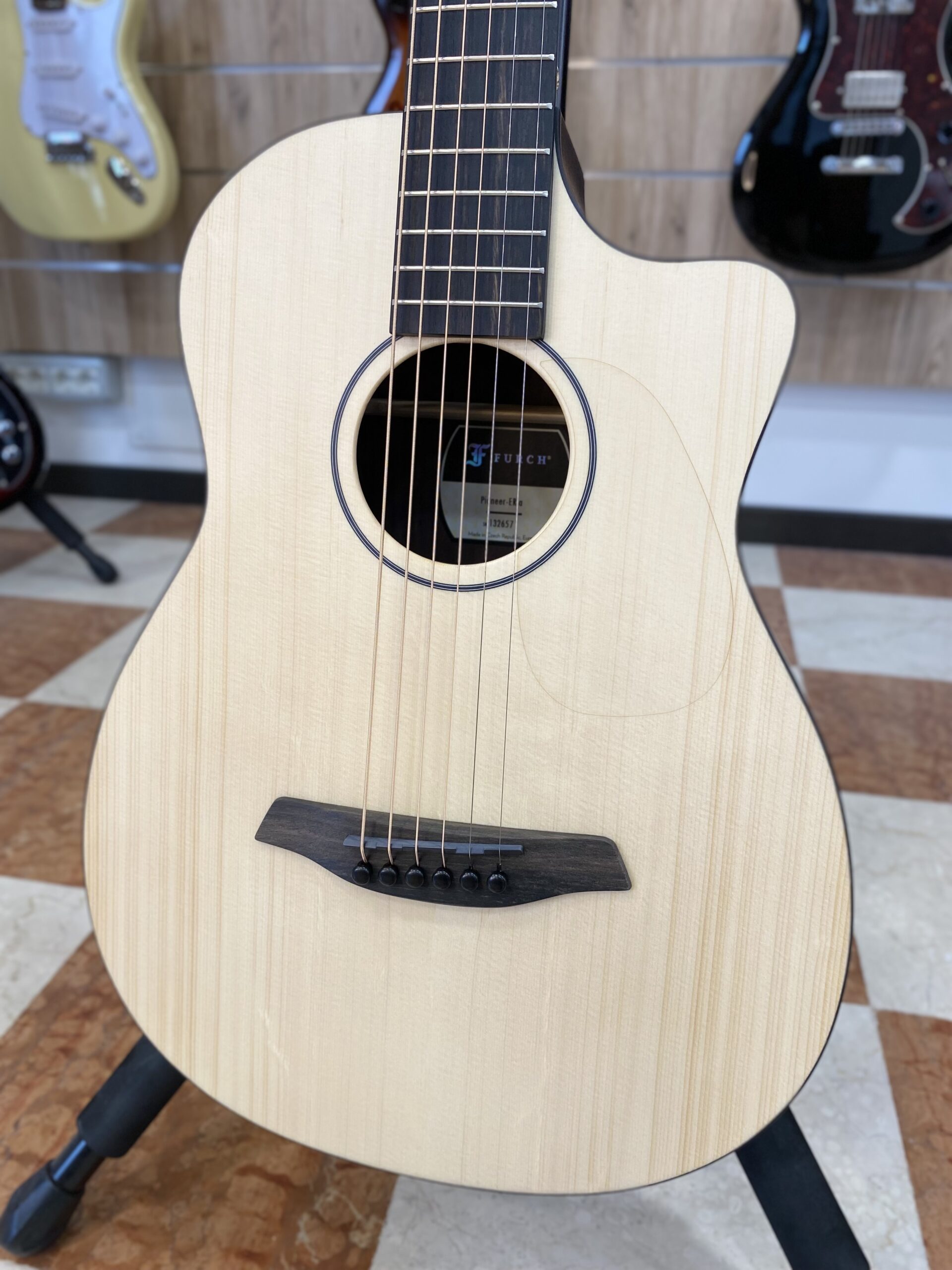 Il modello Pioneer è una mini chitarra in legno massello pensata per chi non vuole scendere a compromessi sul suono durante lo studio o in tour. Progettata per offrire prestazioni acustiche di alto livello, monta un processo esclusivo di voicing individuale del top e il risonatore Booster Soundport, che assicurano un suono ricco ed equilibrato nonostante la scala ridotta. Il sistema Furch CNR System® Active regola automaticamente l’action delle corde, garantendo una suonabilità ottimale appena estratta dalla custodia.