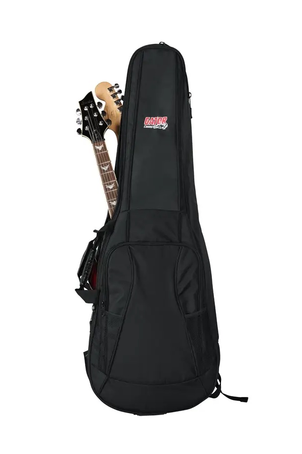 GB-4G-ELECX2 è una borsa doppia progettata da Gator per il trasporto di due chitarre elettriche, ideale per musicisti in movimento che necessitano di protezione e praticità.