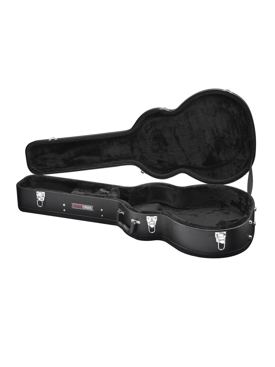 La Gator GW-000AC fa parte della serie Traditional, che offre al chitarrista custodie rigide robuste dal look vintage. La struttura in compensato è molto resistente, e presenta il top arcuato per proteggere ulteriormente la tavola armonica della chitarra. La spessa fodera in peluche protegge la chitarra da urti e graffi, e il manico poggia su un alloggiamento confortevole. Le chiusure cromate con serratura aumentano la sicurezza. Progettata per adattarsi alla Martin 000 e a chitarre acustiche di simile formato.
