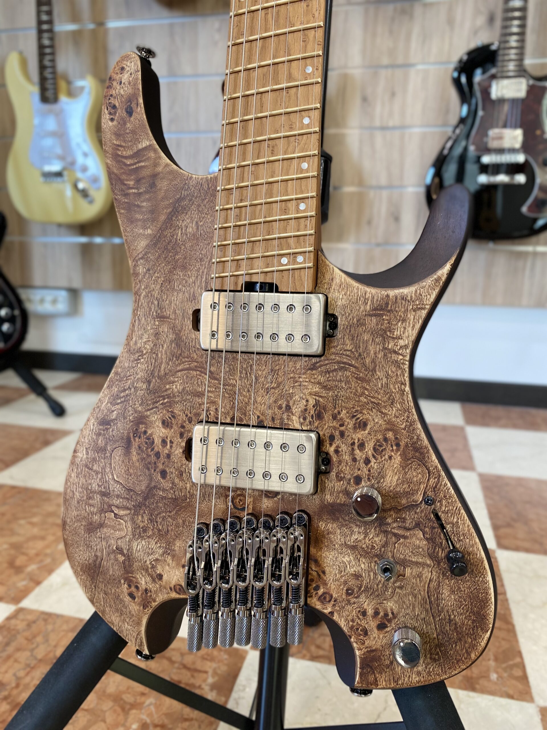 Chitarra headless 7 corde, usata, in condizioni eccellenti. Pochi mesi di utilizzo e nemmeno un graffio.