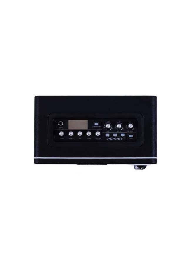 Ogni modello della serie HORNET dispone di due modalità di controllo: LIVE (con parametri immediatamente visibili e modificabili) e PRESET (con la possibilità di salvare le impostazioni come preset). Le 9 simulazioni di amplificatori presenti offrono gain regolabile, equalizzazione a tre bande, volume indipendente, oltre a delay e riverbero controllabili separatamente tramite Tap Tempo in tempo reale. Sono inoltre inclusi un accordatore integrato ad alta sensibilità, il Bluetooth per la riproduzione audio con volume regolabile e un’uscita cuffie per esercitarsi in silenzio.
