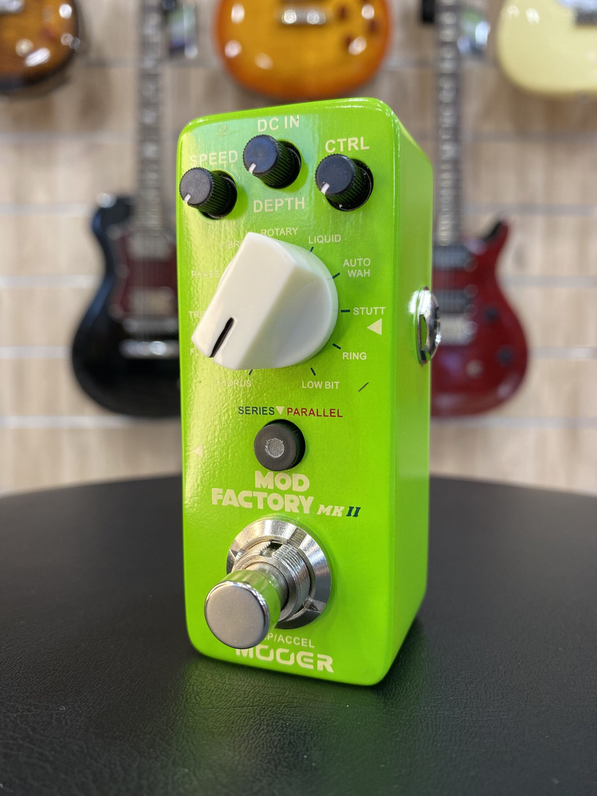 Il MOD FACTORY MKII offre inoltre la modalità SERIE / PARALLELO: l’apposito selettore consente di scegliere tra routing interno in serie o in parallelo, permettendo di ottenere due caratteri sonori distinti per ciascun tipo di modulazione.