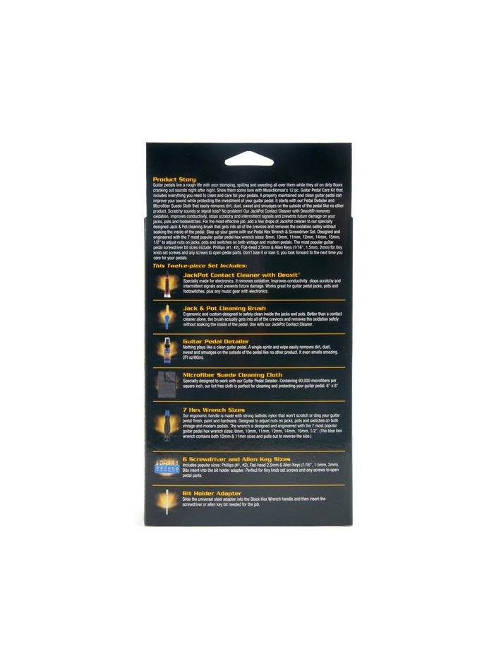 I pedali per chitarra affrontano una vita dura! Trattali con cura grazie al Kit di Manutenzione per Pedali di Chitarra di MusicNomad, un set da 12 pezzi che include tutto ciò di cui hai bisogno per pulire e mantenere i tuoi pedali. Un pedale ben tenuto e pulito non solo migliora il suono, ma protegge anche il tuo investimento.