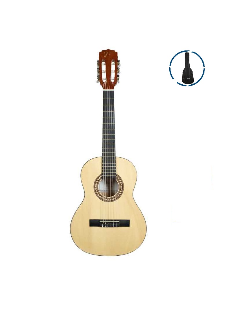 Chitarra classica Junior 1/2, per bambini di 5-7 anni. Tavola, fascia e cassa in tiglio.Tastiera in catalpa. Custodia inclusa. Ideale per un primo contatto con la chitarra classica.