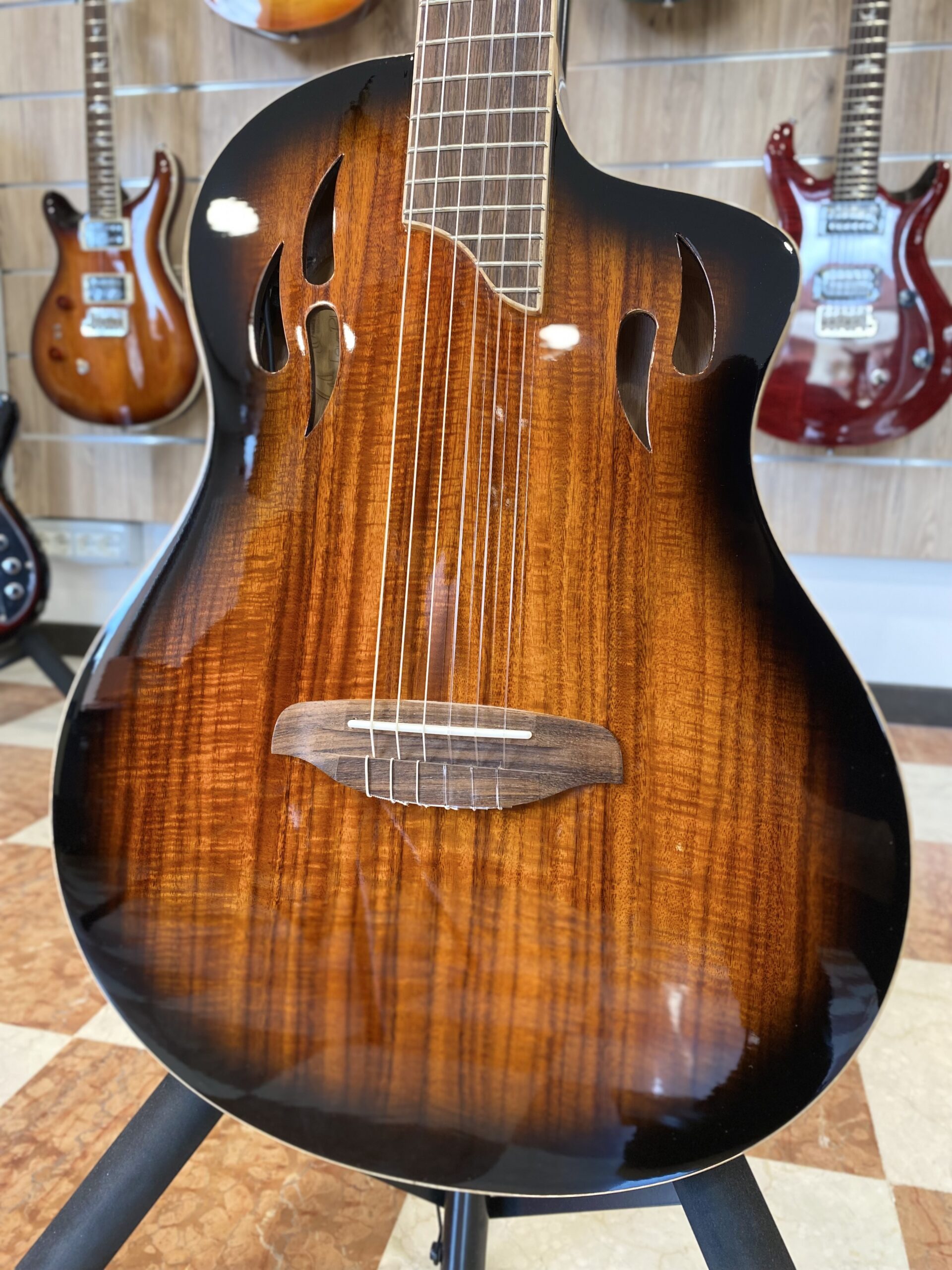 La rivoluzionaria chitarra elettrica a corde di nylon TourPlayer è progettata per le esibizioni dal vivo, offrendo il calore e la risonanza autentica di una chitarra classica in nylon, eliminando al contempo i problemi di feedback. Scopri un mondo di possibilità sonore che non avresti mai immaginato su una chitarra in nylon. La TourPlayer combina la bellezza delle corde in nylon con la potenza e l’emozione di una chitarra elettrica, offrendo innovazione al massimo livello.