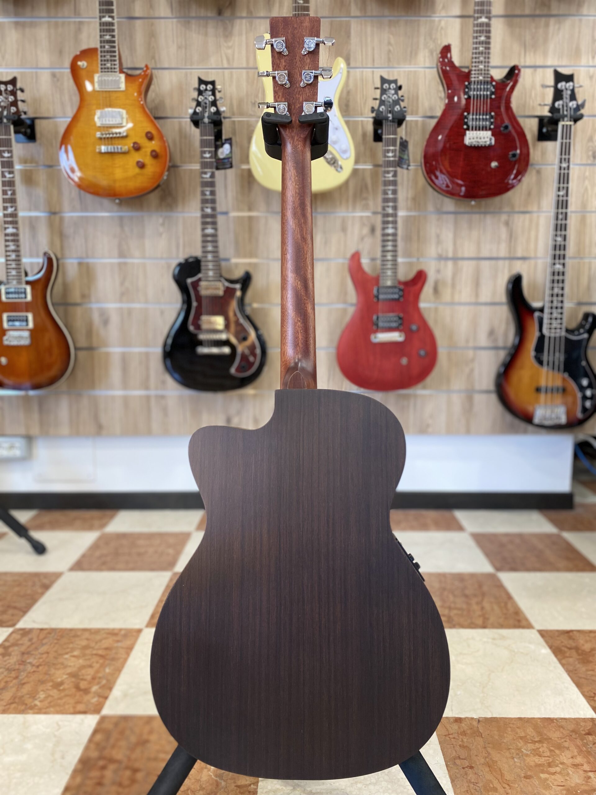 Chitarra acustica amplificabile. Forma auditorium (000), con tavola in abete massello