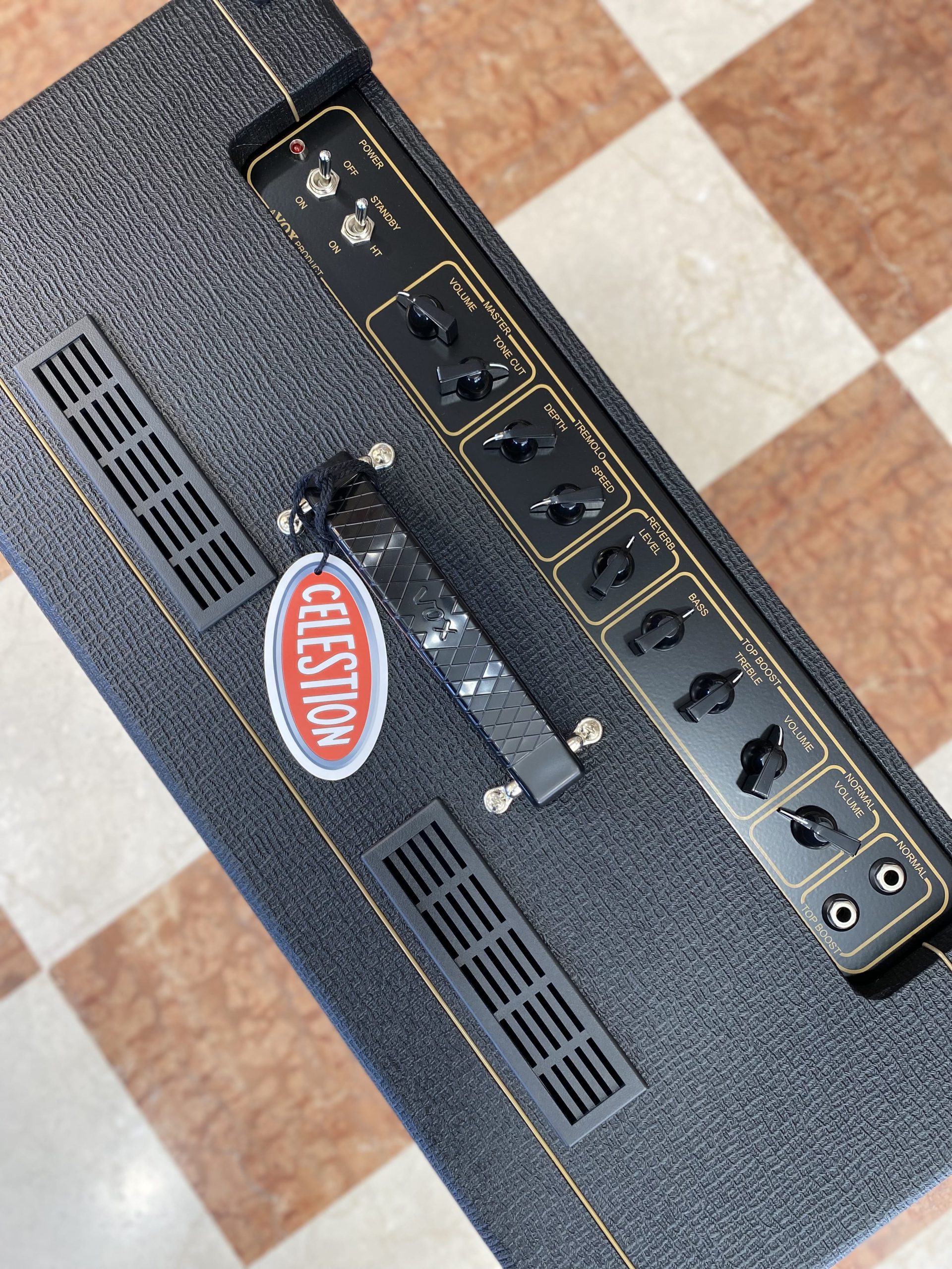 Controlli: Master Volume, Master Tone Cut, Normal Volume, Top Boost Volume, Top Boost Bass, Top Boost Treble, Speaker Level, Tremolo (Depth, Speed)
