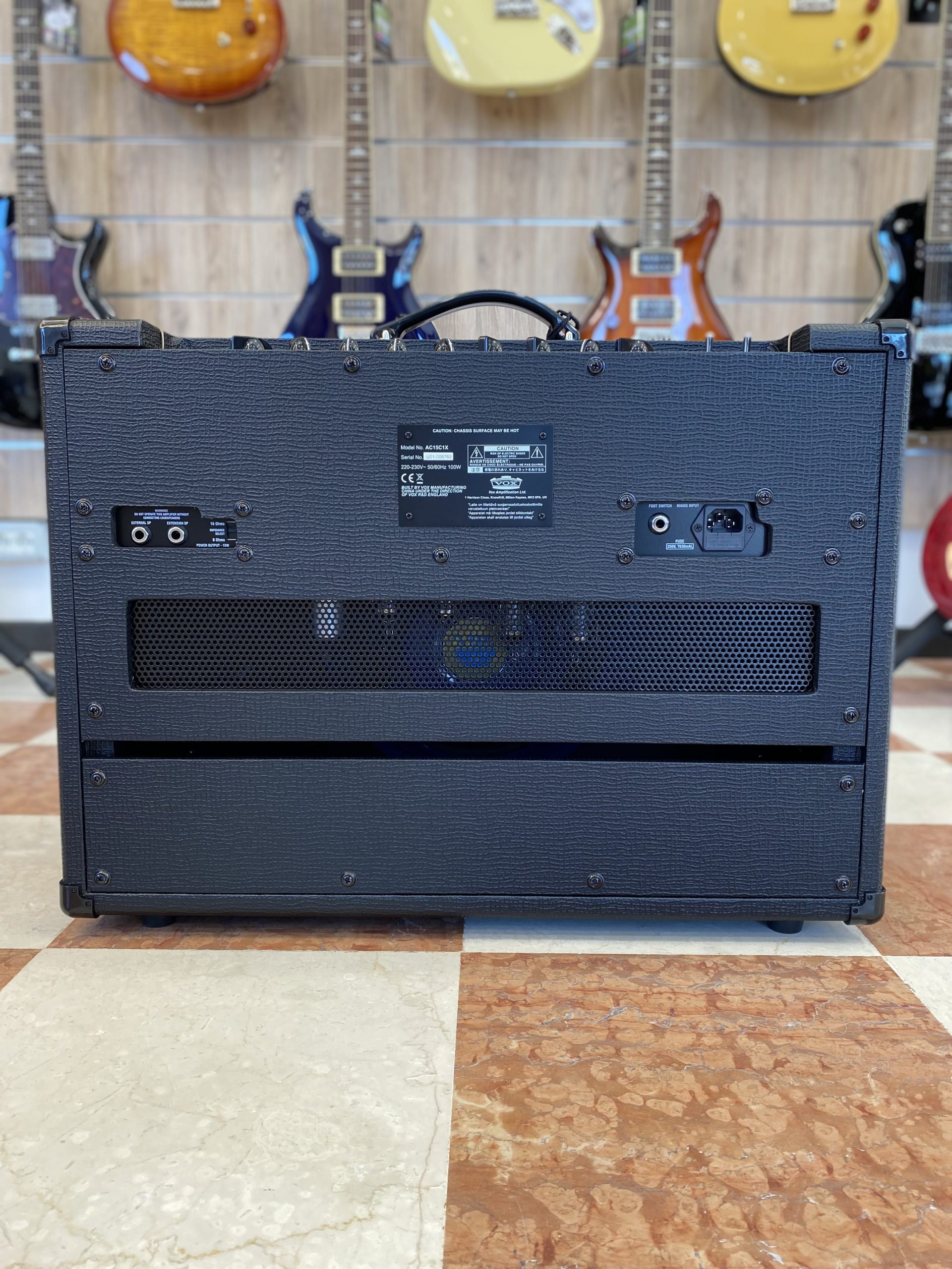 L’AC15C1X è l’amplificatore per chitarra elettrica di casa Vox che monta, rispetto al classico AC15, un cono da 12″ Celestion Blue Alnico. Con all’interno due valvole EL84, eroga 15 Watts RMS. Presenta 2 ingressi (Normal e Top Boost), controlli di Master Volume, Master Tone Cut, Normal Volume, Top Boost Volume, Top Boost Bass, Top Boost Treble, Reverb Level, Tremolo Speed e Tremolo Depth. Ideale per il chitarrista amante del celebre suono acido in pieno stile British.
